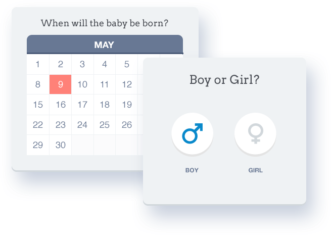 When the baby arrives, we'll declare a winner using our critically acclaimed scoring system. And you can share a custom virtual announcement of the little one with the world!